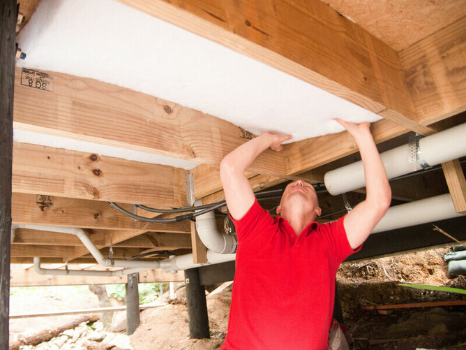 Underfloor insulation must meet a minimum R‑value of 1.3.